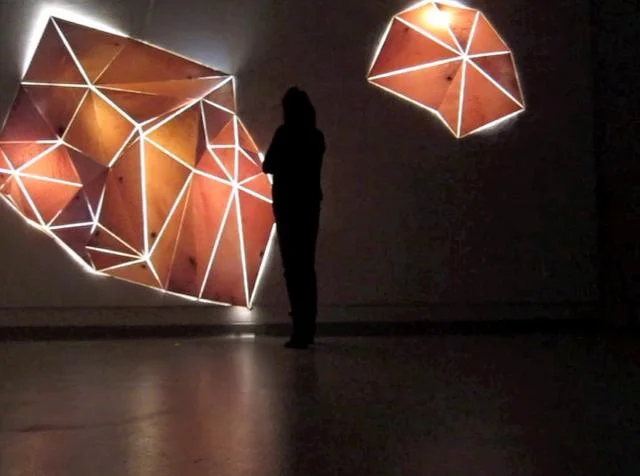 Constellations draws a parallel between the stars in the sky and the city lights. When looking down upon a city, the stars appear to have fallen, captured by the people to light up their homes. The inside of the domes presents a viewer with an intimate look at a city scape, which mirrors the opposing stars. The cascading texture and varying depths of black paper evokes an expansive ski, which blocks out any other light to give the view and immersive experience. Like the symbols and characters that have been created from the stars in the sky, Constellations compels the viewer to look at city lights in a new way, with a myriad of patterns, characters and stories.